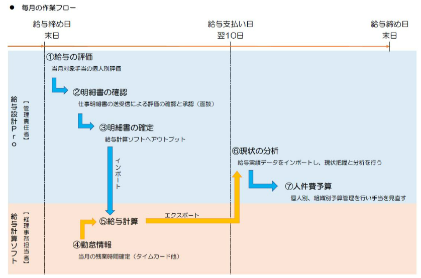 毎月の作業フロー①~③の流れ(賞与の評価も同様です)
