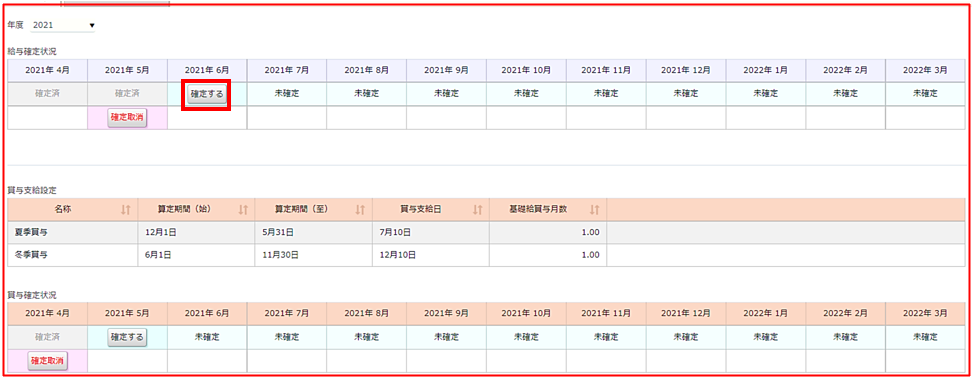 ※「給与の評価>保存」と「明細書の確定>確定する」は毎月分してください。