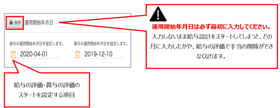 【給与の評価】・【賞与の評価】を開始する年月日を設定します。
