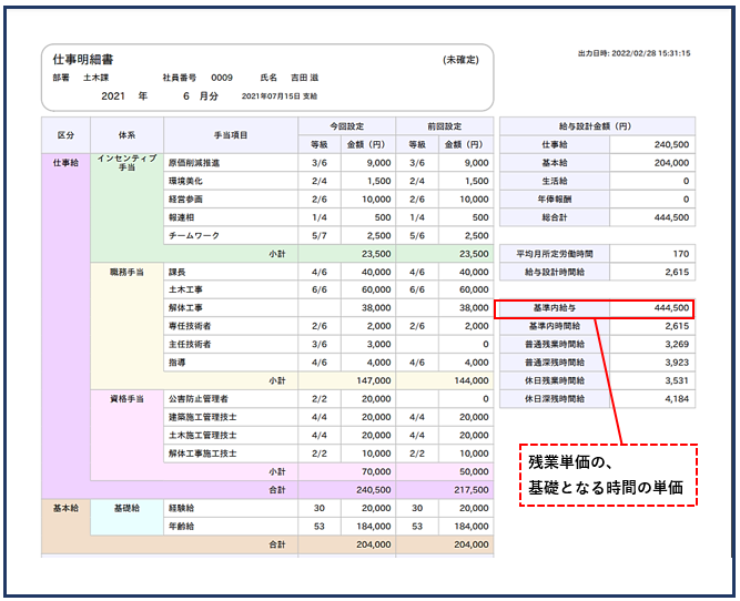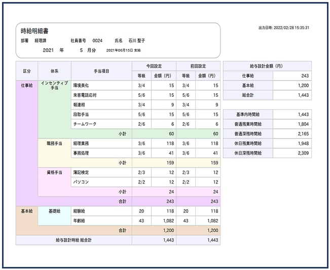 場合には、仕事明細書が表示され、時給制の場合には時給明細書が表示されます。
