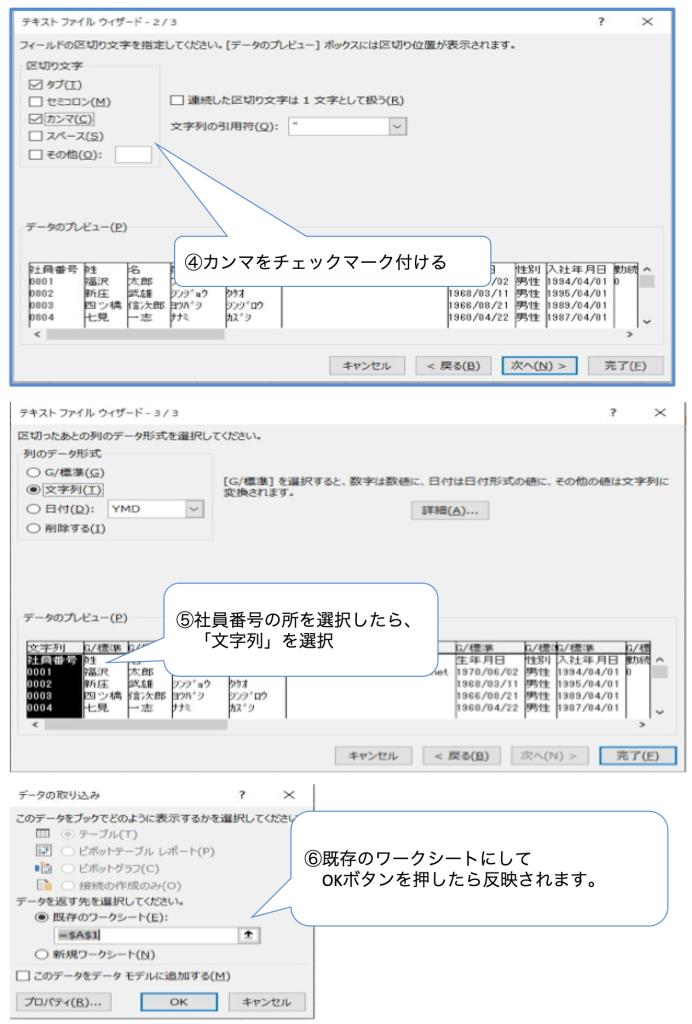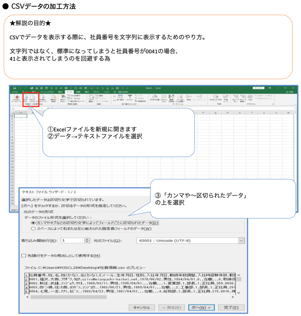 社員番号のコードの変換が非常に重要です。