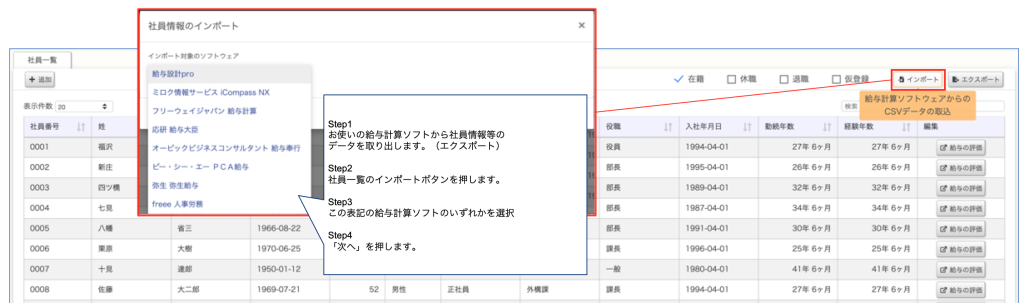 給与計算ソフトからインポート(取り込み)を行います。