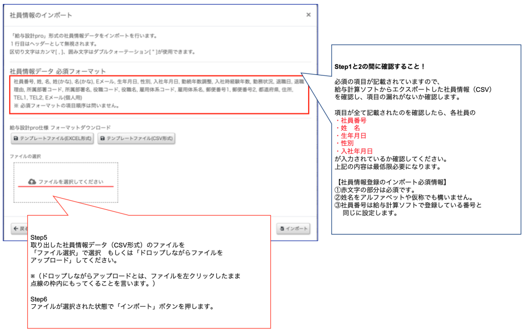 1、給与計算ソフトからCSVデータを吐き出し、給与設Proにインポート(取り込み)