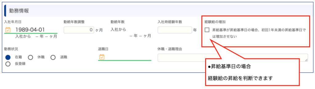 昇給基準日で一括昇給する場合、経験給をすぐ上げない設定はできますか?